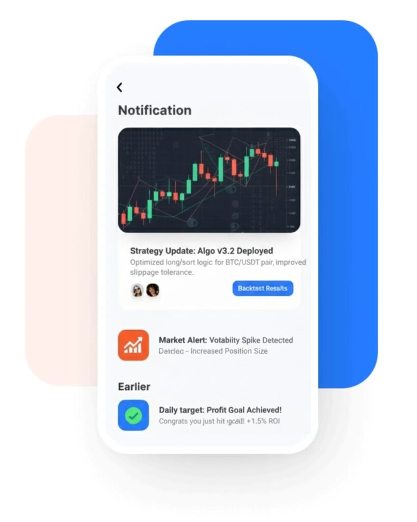 Stay ahead of every move. Quick Algo Trade keeps you updated with instant alerts on strategy performance, market trends, and trading signals. From price fluctuations to algorithm updates — you’ll always be in control, wherever you trade.